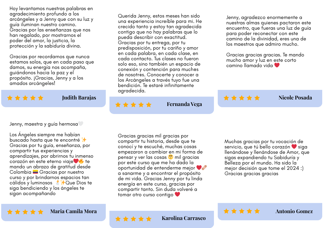 Comencé a recibir señales de que los ángeles estaban conmigo. Y aunque no sabía aún entender su lenguaje, desde la primera vez que tomé una terapia angelical, pude liberarme del peso de la culpa, tristeza y resentimientos que nunca había podido explicar antes. Dejé de soñar con personas del pasado y de pensar en esos momentos traumáticos, y comencé junto con los arcángeles un proceso de limpieza profunda de mis recuerdos y emociones. Un viaje que me cambió desde la raíz y me hizo querer cambiar mi carrera para poder compartir éste milagro con muchas personas más.